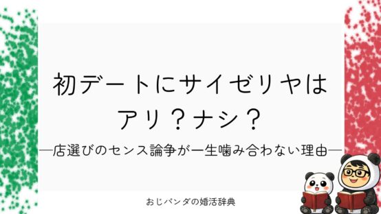 パンダのコラム 初デートでサイゼはアリ?ナシ? 最近Xを見てると、定期的に燃え上がるテーマがある。今日はこの話を仲人の立場から少し違う角度で整理してみたい。「デートでサイゼリヤ、町中華はアリかナシか」論争。 2026.01.28 パンダのコラム婚活指南