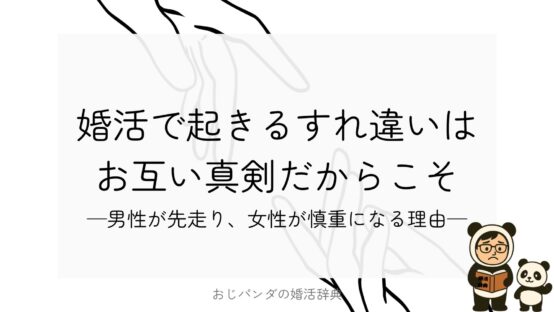 女性向け記事 男性が先走り、女性が慎重になる理由 婚活で噛み合わない正体。多くの人はここを 「相性が悪かった」 「タイミングが合わなかった」 で片付けてしまう。 実はこれ、構造の問題🐼 2026.01.17 女性向け記事婚活あるある男性向け記事