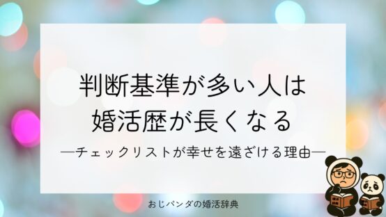 Uncategorized 結婚のメリットとデメリットって? 「結婚のメリットって何?」「独身の方が自由じゃない?」でもパンダ的に思うのは結婚のメリットとデメリットって、ほぼ全部、表裏一体なんだよね。そして本質はここ。 2026.02.25 Uncategorizedパンダのコラム婚活あるある